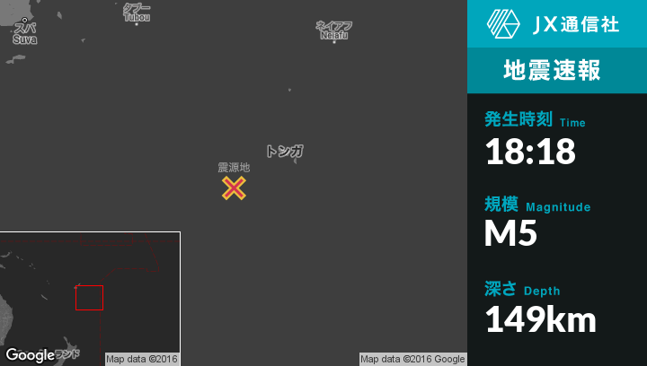 | 震源地 | トンガのVainiから西南西147kmの地点 |