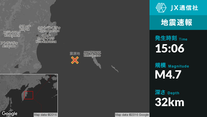 | 震源地 | ロシアのNikol'skoyeから西85kmの地点 |
