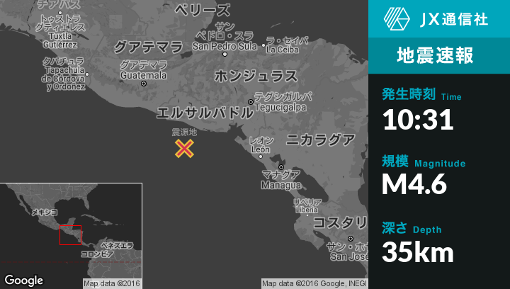 | 震源地 | エルサルバドルのLa Libertadから南78kmの地点 |