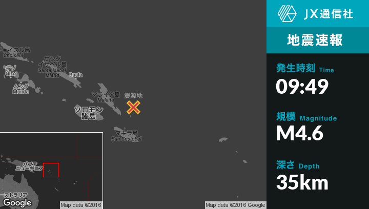 12月26日 09:49頃、ソロモン諸島のKirakiraから北134kmの地点でM4.6の地震がありました。