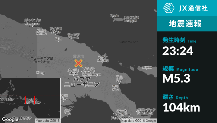 | 震源地 | パプア ニューギニア独立国のWabagから北東52kmの地点 |