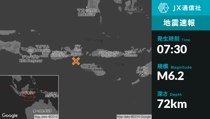 | 震源地 | インドネシアのTolotanggaから南33kmの地点 |