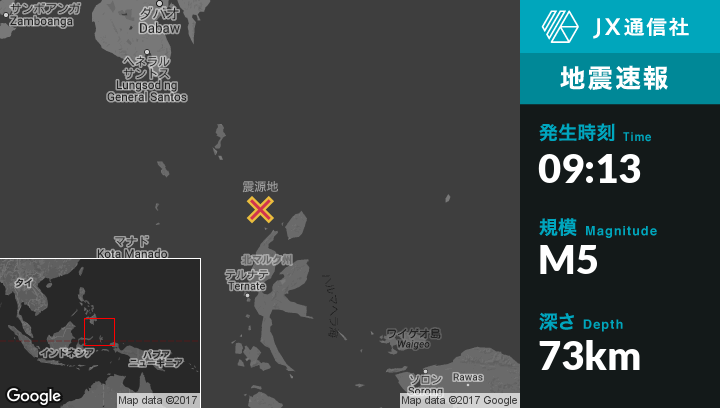 | 震源地 | インドネシアのTobeloから北北西124kmの地点 |