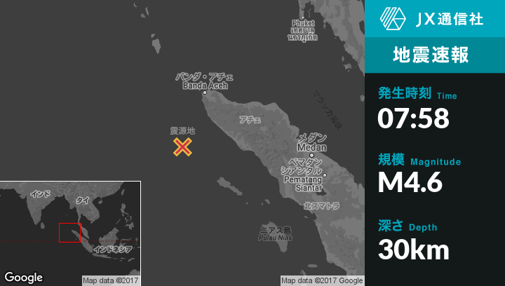 | 震源地 | インドネシアのMeulabohから西169kmの地点 |