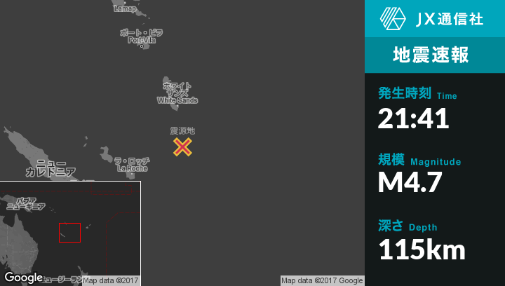 | 震源地 | バヌアツのIsangelから南南東121kmの地点 |