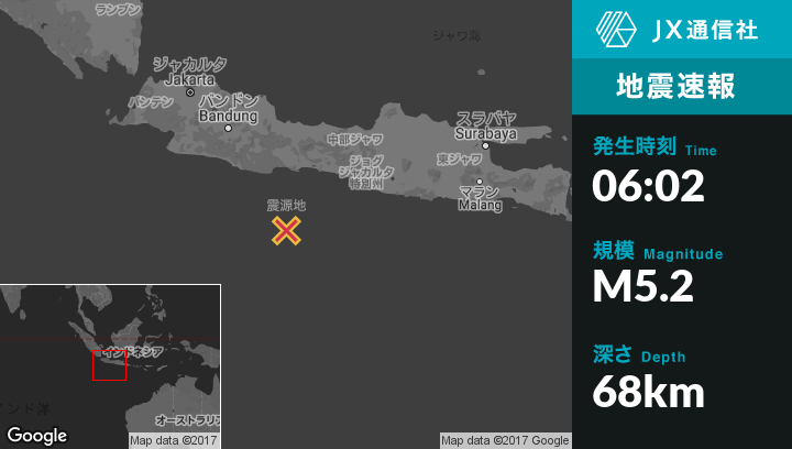 | 震源地 | インドネシアのSindangsariから南南東117kmの地点 |