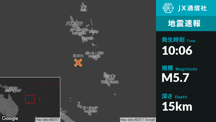 | 震源地 | バヌアツのPort-Vilaから西126kmの地点 |