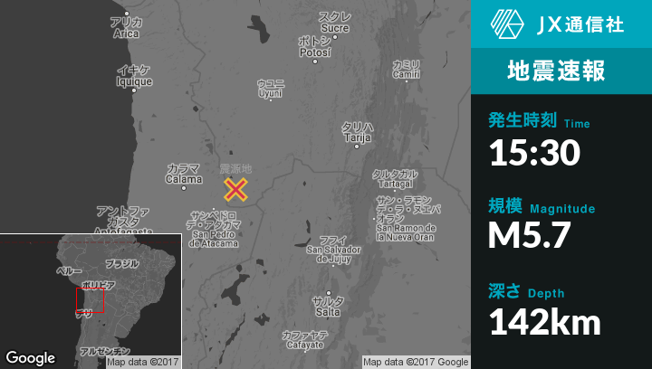 | 震源地 | チリのSan Pedro de Atacamaから北東82kmの地点 |