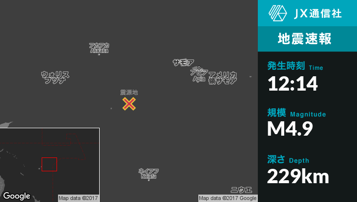 1月09日 12:14頃、トンガのHihifoから西北西139kmの地点でM4.9の地震がありました。