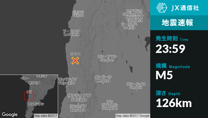 | 震源地 | チリのIllapelから北北東40kmの地点 |