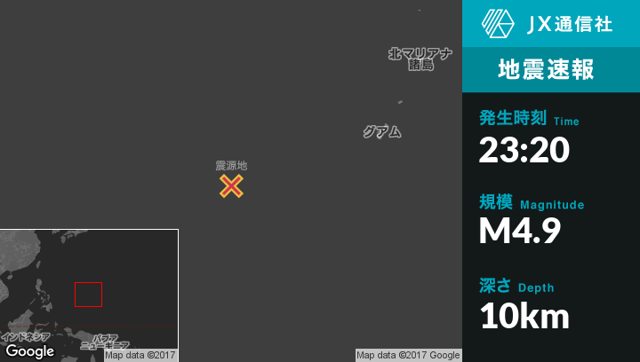 1月11日 23:20頃、ミクロネシアのFaisから北北東280kmの地点でM4.9の地震がありました。