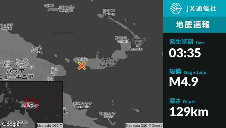 | 震源地 | パプア ニューギニア独立国のKandrianから西北西78kmの地点 |