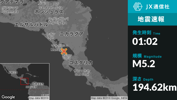 | 震源地 | ニカラグアのMoyogalpaから南2kmの地点 |