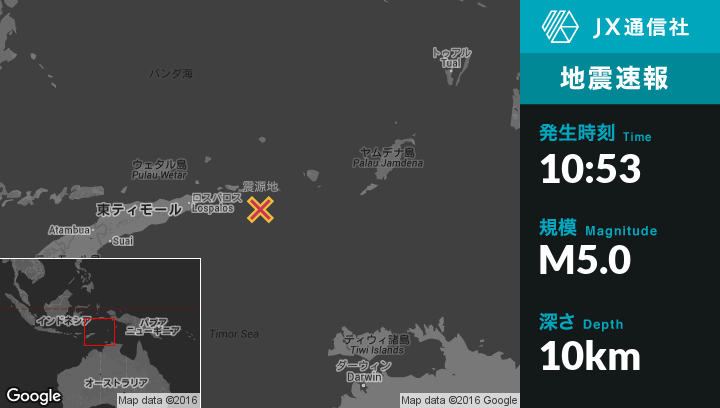 | 震源地 | インドネシアのSaumlakiから西南西311kmの地点 |