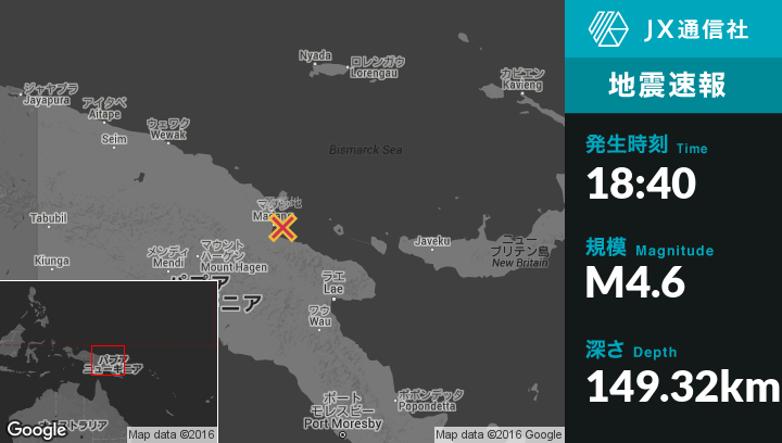 | 震源地 | パプア ニューギニア独立国のMadangから東北東19kmの地点 |