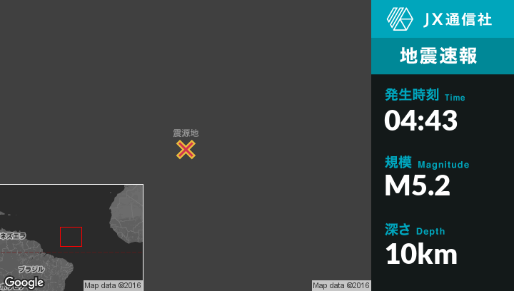 5月28日 13:43頃、ブラジルのAcarauから北北東1228kmの地点で地震がありました。