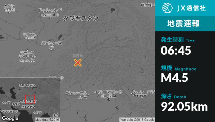| 震源地 | アフガニスタンの`Alaqahdari-ye Kiran wa Munjanから北東4kmの地点 |