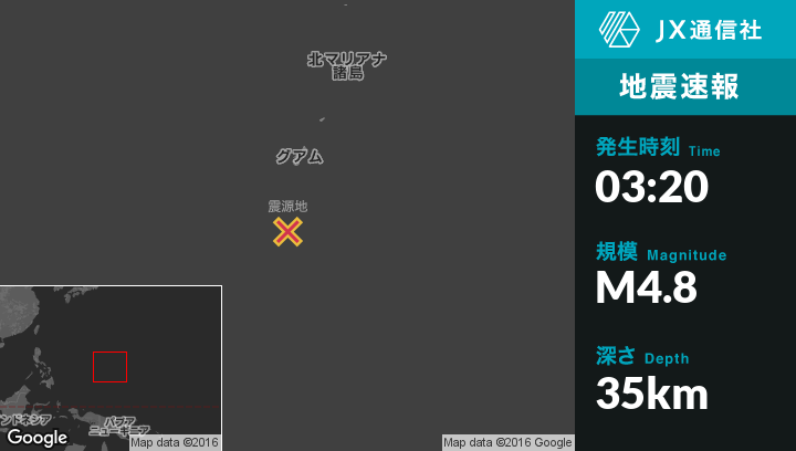 | 震源地 | グアムのMerizo Villageから南130kmの地点 |