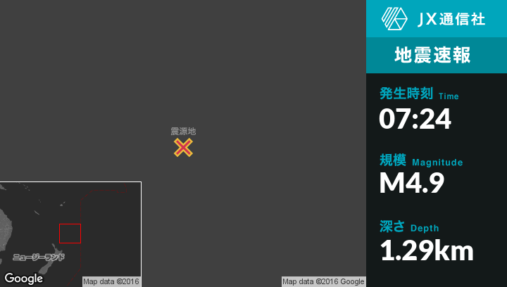 | 震源地 | ニュージーランドのL'Esperance Rockから東123kmの地点 |