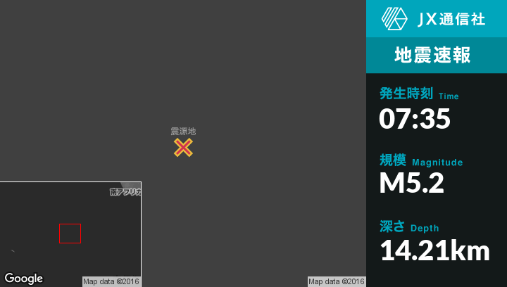 | 震源地 | ブーベ島のBouvet Islandから西北西967kmの地点 |
