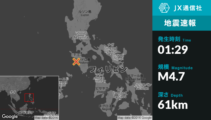 | 震源地 | フィリピンのMamburaoから南東3kmの地点 |
