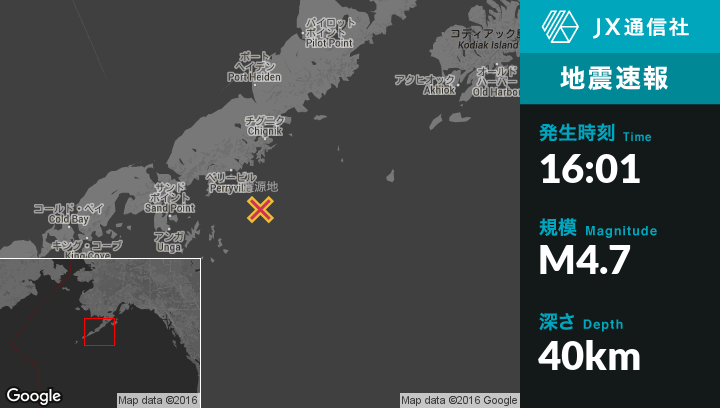 | 震源地 | アラスカのChignik Lakeから南86kmの地点 |