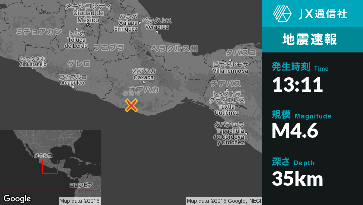 6月06日 13:11頃、メキシコのSanta Catarina Juquilaから南東3kmの地点で地震がありました。