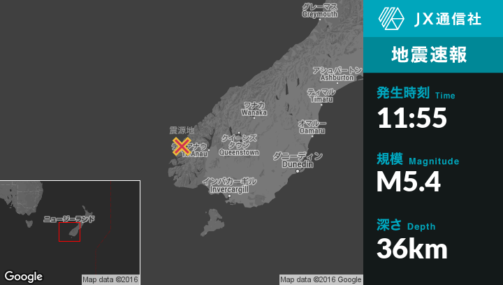 | 震源地 | ニュージーランドのTe Anauから西北西70kmの地点 |