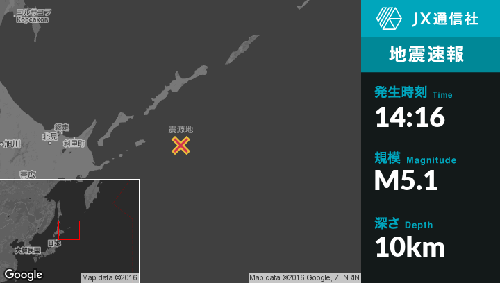 6月07日 14:16頃、ロシアのShikotanから東104kmの地点で地震がありました。