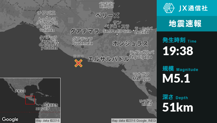 | 震源地 | グアテマラのPuerto San Joseから南38kmの地点 |