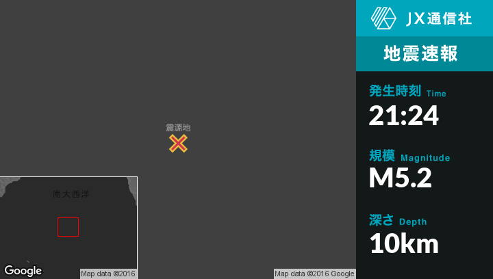 | 震源地 | セントヘレナのEdinburgh of the Seven Seasから南南西704kmの地点 |