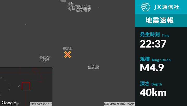 | 震源地 | トンガのNeiafuから東北東218kmの地点 |