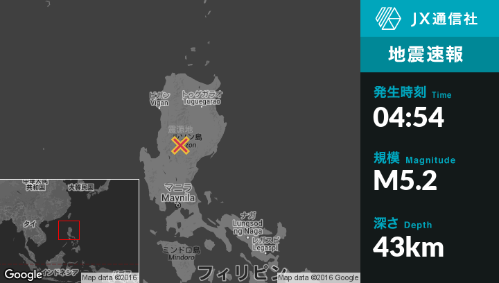| 震源地 | フィリピンのUddiawanから西11kmの地点 |