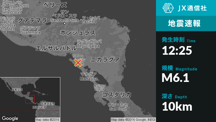 | 震源地 | ニカラグアのPuerto Morazanから東17kmの地点 |