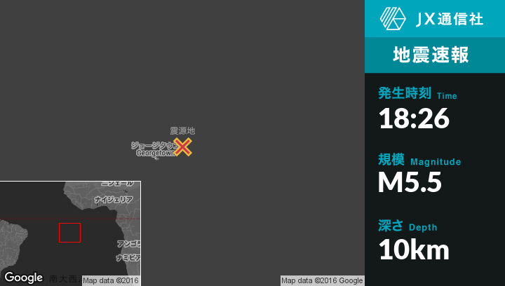 6月10日 18:26頃、セントヘレナのGeorgetownから東北東106kmの地点で地震がありました。