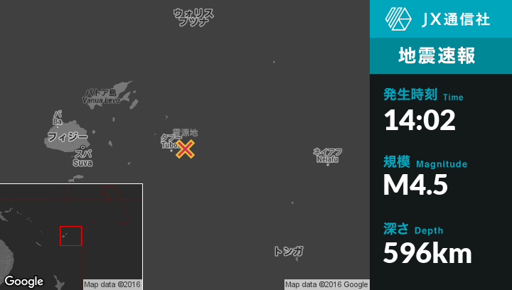 | 震源地 | フィジーのNdoi Islandから北288kmの地点 |