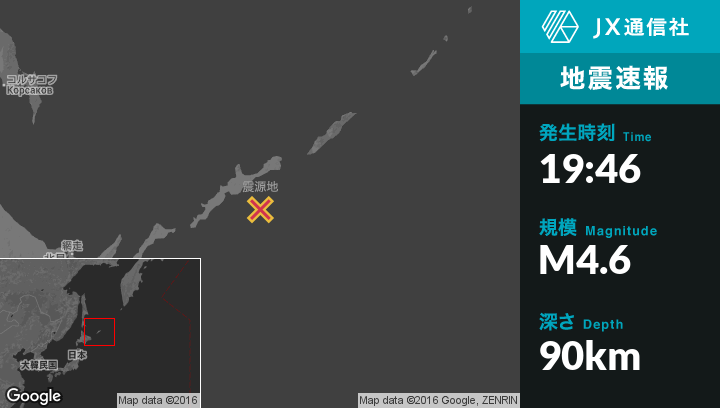| 震源地 | ロシアのKuril'skから南東62kmの地点 |