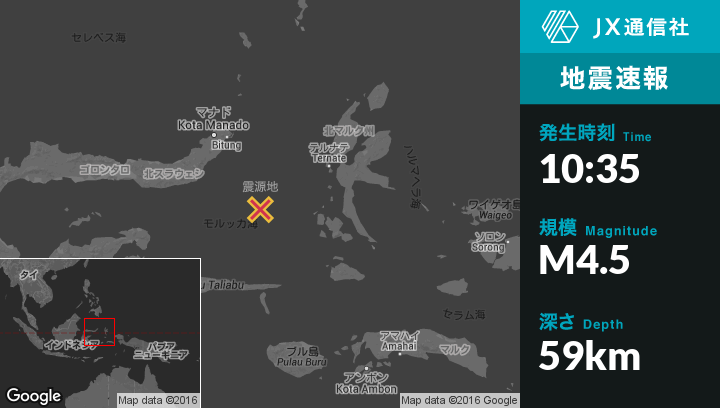 | 震源地 | インドネシアのBitungから南南東181kmの地点 |