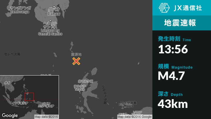 | 震源地 | インドネシアのTobeloから北北西190kmの地点 |