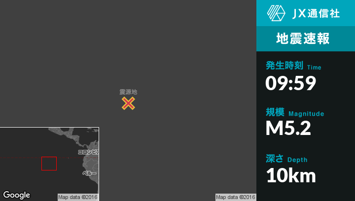 | 震源地 | エクアドルのPuerto Villamilから西南西1596kmの地点 |