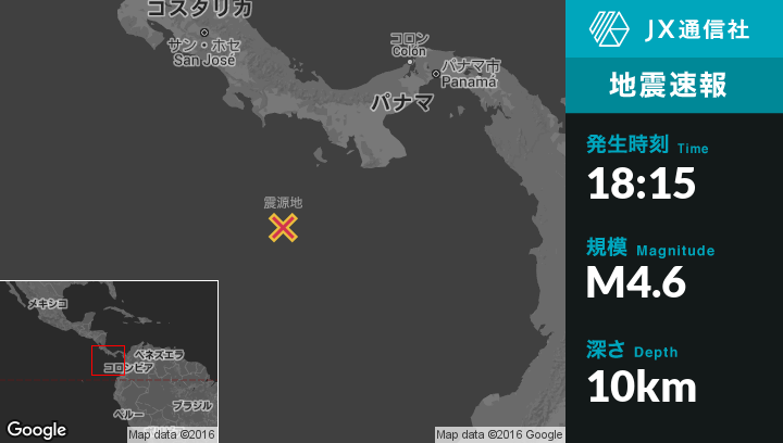 | 震源地 | パナマのPunta de Buricaから南213kmの地点 |
