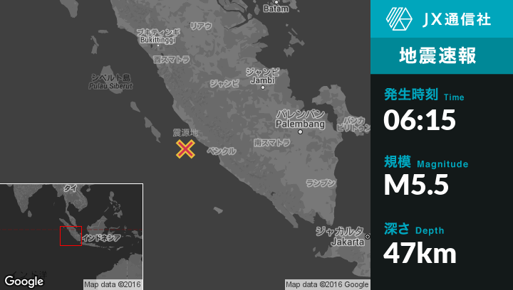 | 震源地 | インドネシアのBengkuluから西北西124kmの地点 |