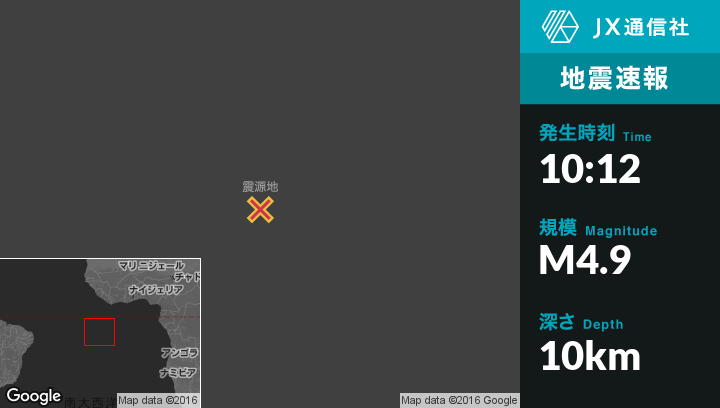 6月19日 10:12頃、セントヘレナのGeorgetownから北東404kmの地点で地震がありました。