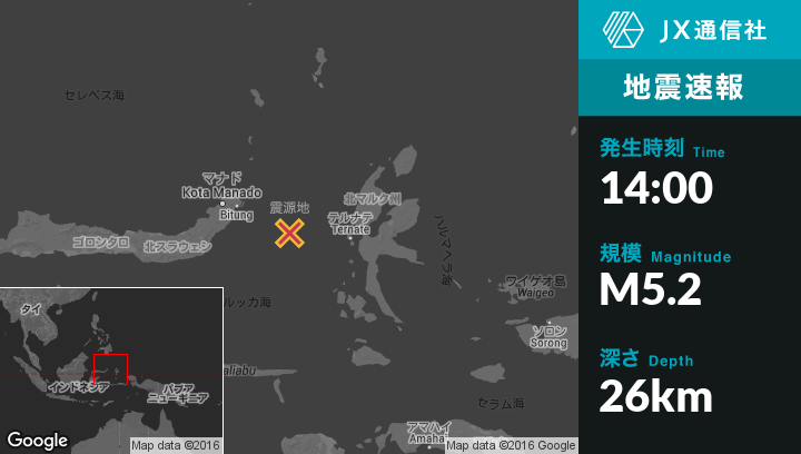 | 震源地 | インドネシアのBitungから東南東118kmの地点 |