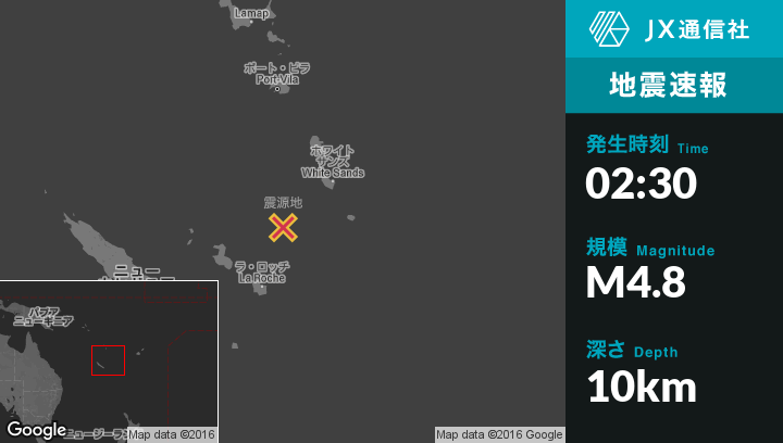 | 震源地 | バヌアツのIsangelから南西116kmの地点 |
