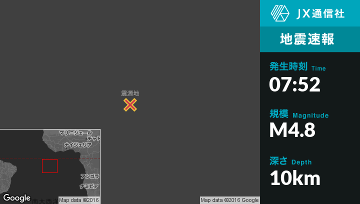 6月20日 07:52頃、セントヘレナのGeorgetownから北東401kmの地点で地震がありました。
