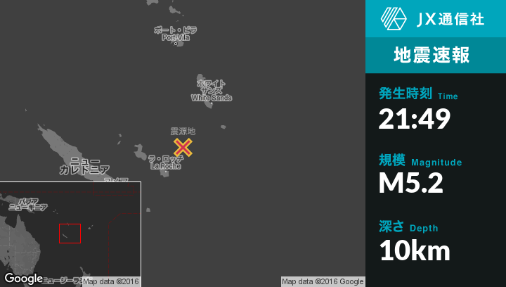 | 震源地 | ニューカレドニアのTadineから北東118kmの地点 |
