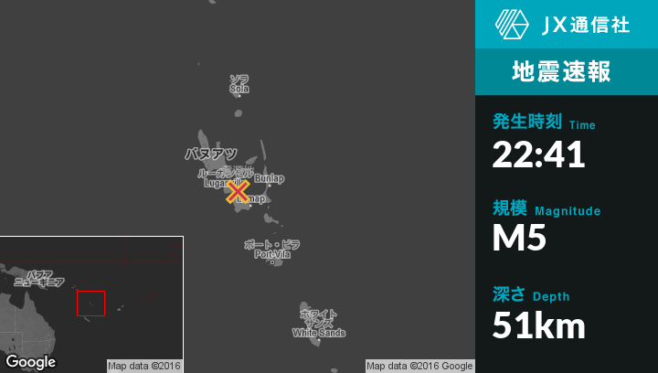 | 震源地 | バヌアツのNorsupから東北東15kmの地点 |