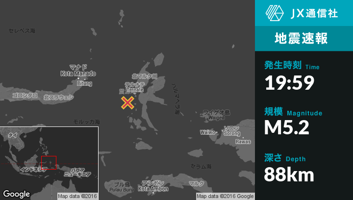 | 震源地 | インドネシアのKota Ternateから南西47kmの地点 |