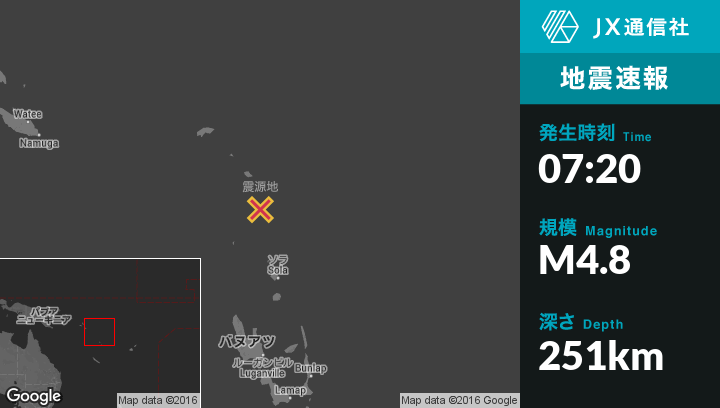 | 震源地 | バヌアツのSolaから北北西181kmの地点 |